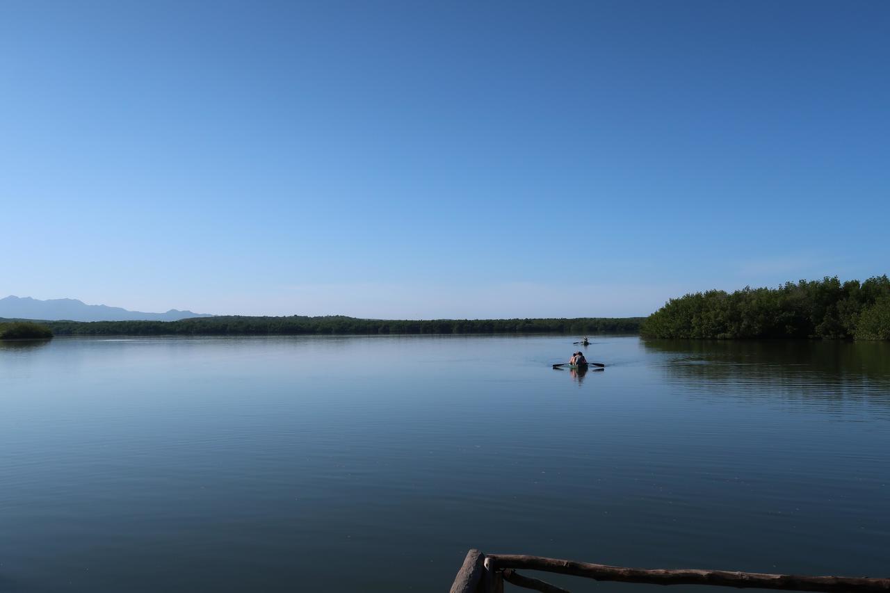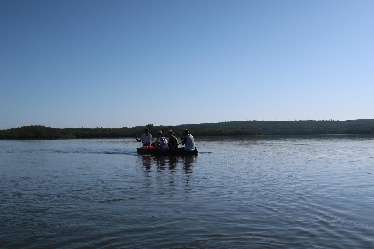 Wir warten. Unser Taxifahrer hat uns 15 Minuten zu früh am Eingang des Reservats abgeliefert. Dieser öffnet dann 15 Minuten später als angegeben, kubanisch pünktlich also. Es dauert gefühlt weitere 15 Minuten, bis die drei Damen vor uns ihre Eintrittskarten gekauft haben. Wie in Kuba vielerorts üblich muss jeder einzelne Pass im Detail erfasst werden - wozu auch immer. Ob wir hier Wasser kaufen könnten? Nein, es gäbe nur Rum... Da heute irgendwie zu viele Touris aufgetaucht sind, müssen wir zu dritt in die Ruderboote, weshalb wir beide uns aufteilen und uns zu Paaren aus Belgien und der Schweiz gesellen.