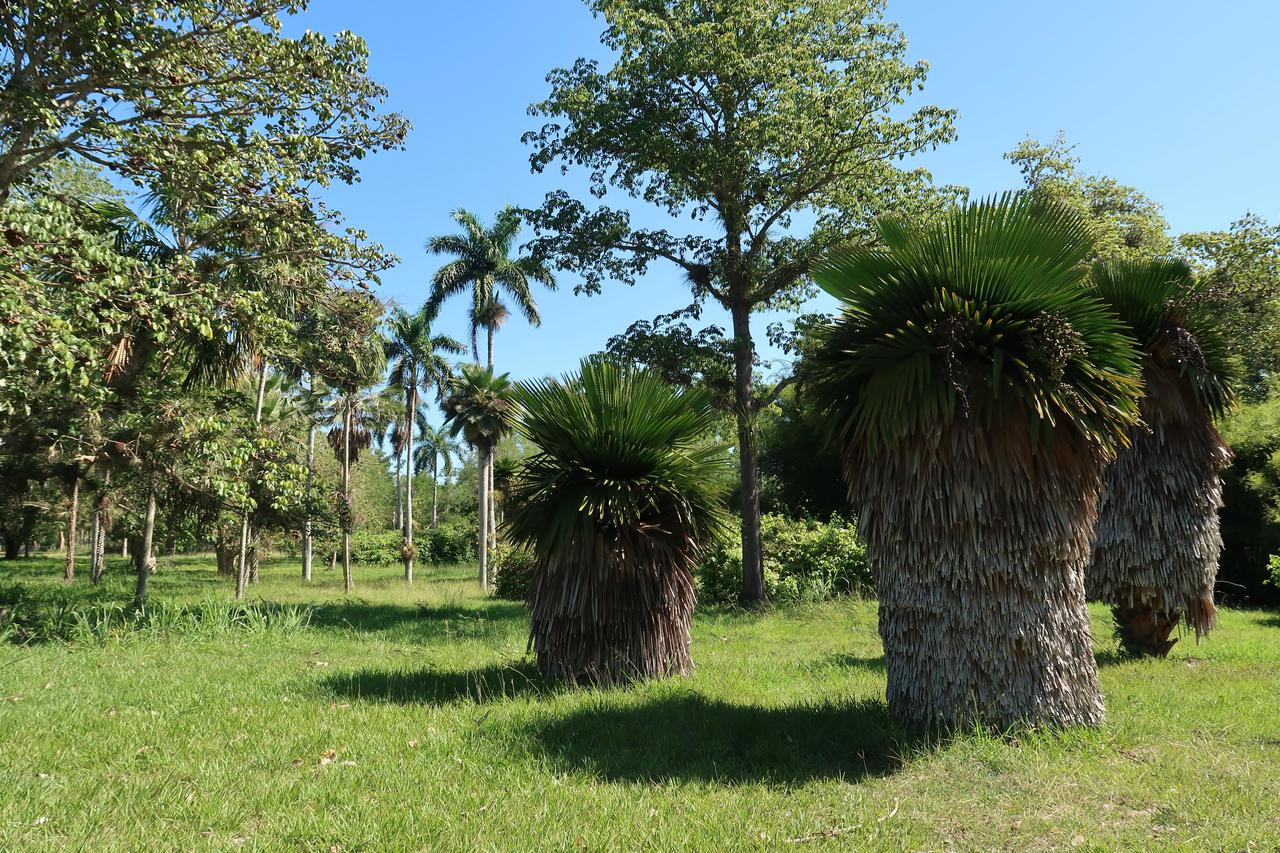 Neben dieser urkomischen Show bekommen wir interessante Einblicke in die kubanische Flora und Fauna. Wir sehen mehrere Chamäleons und einen Tocoroco, den kubanischen Nationalvogel, der in seinem Gefieder die Farben der kubanischen Flagge vereint (rot, blau, weiß). Neben Teak- und Ebenholzbäumen spazieren wir an einem 94-Jahre alten Bambus vorbei und probieren das Fruchtfleisch eines Cashew-Nussbaums. Nach der Touri-Tour genießen wir die Ruhe, als wir alleine durch den idyllischen Palmengarten spazieren. Foreshadowing bzw. Nachtrag: Exakt vier Wochen später verbietet die US-Regierung touristische Reisen nach Kuba mit sofortiger Wirkung, wie wir in Kolumbien von einem Kalifornier erfahren werden. Wodurch sich die Busreisenden rückblickend glücklich schätzen können, trotz des Kindergartens.