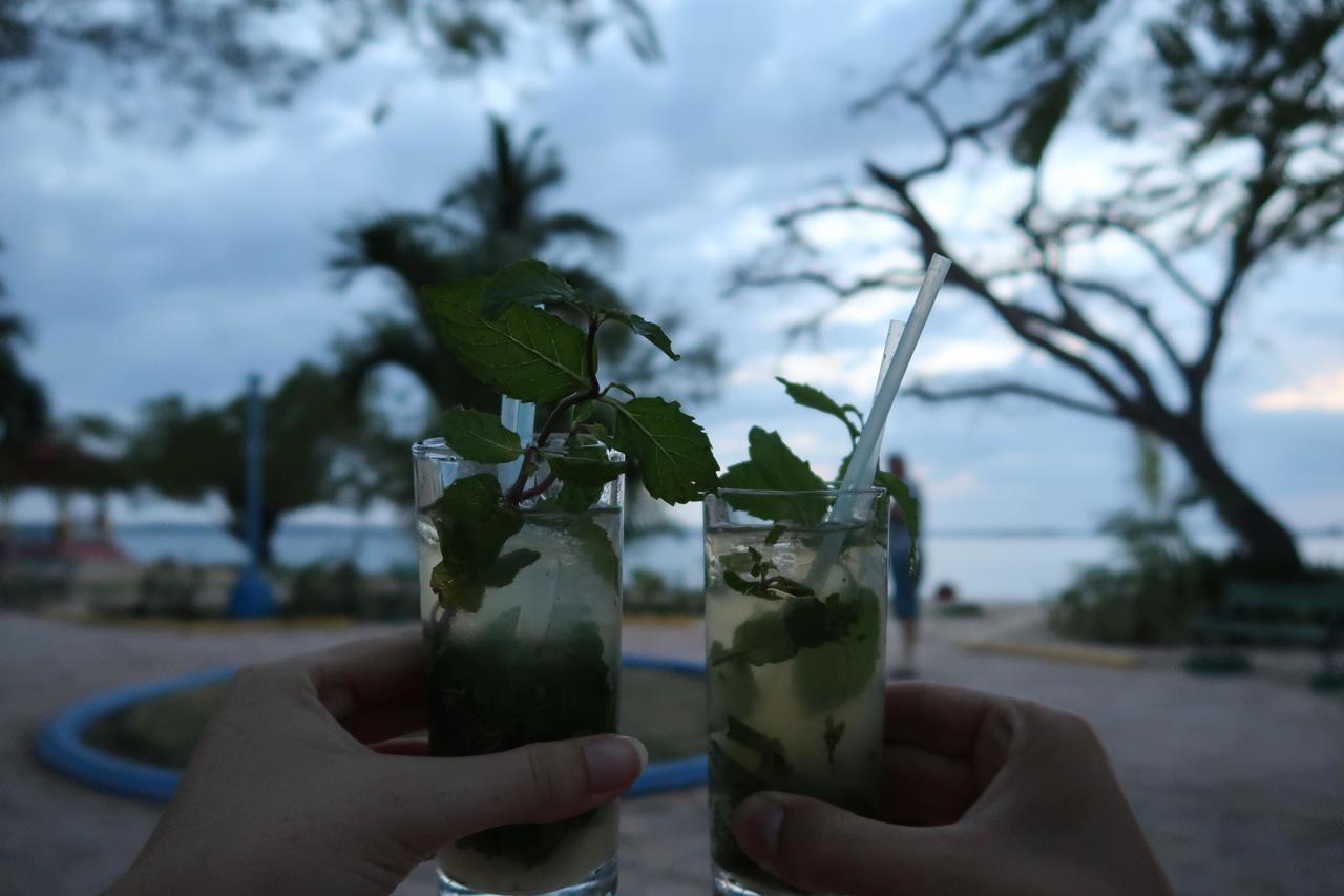 Voller Schlaglöcher ist die Straße nach Punta Gorda, entsprechend ruckelig ist die Fahrt in der klapprigen Pferdekutsche. Auf der Landzunge des Centro Recreativo genießen wir mit Mojitos das abendliche Karibik-Flair in der französischen Stadt. Während ein paar Kubaner im Meer planschen, geht auch die Sonne hinter einem Wolkenschleier baden. In der Laguna Guanaroca versammeln sich die Flamingos in der Mitte des Sees dicht an dicht zur Nachtruhe. Bonne nuit, Cienfuegos!