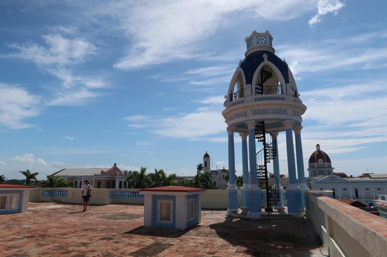 Bonjour, Cienfuegos! Ein Triumphbogen, neoklassizistische Gebäude und Prachtmeilen mit französischen Fassaden zieren die Innenstadt. Kubas „Perle des Südens“ wurde nämlich von Franzosen gegründet. Am Parque José Martin wartet das Teatro Tomás Terry mit einer schiefen Bühne auf, seit deren Hebemechanismus vor einigen Jahrzehnten den Geist aufgegeben hat. Das himmelblaue Casa de la Cultura Benjamin Duarte trumpft mit italienischen Marmorböden, französischen Antiquitäten und einer Kuppel mit einer schmiedeeisernen Treppe auf dem Dach auf, von der aus wir den Blick über die Dächer der Stadt bis zum Meer genießen. Und im grünen Innenhof unseres Casa Partiular namens Hostal La Cascada lässt es sich gut bei kubanischen Salzkeksen mit Guavenmarmelade entspannen.