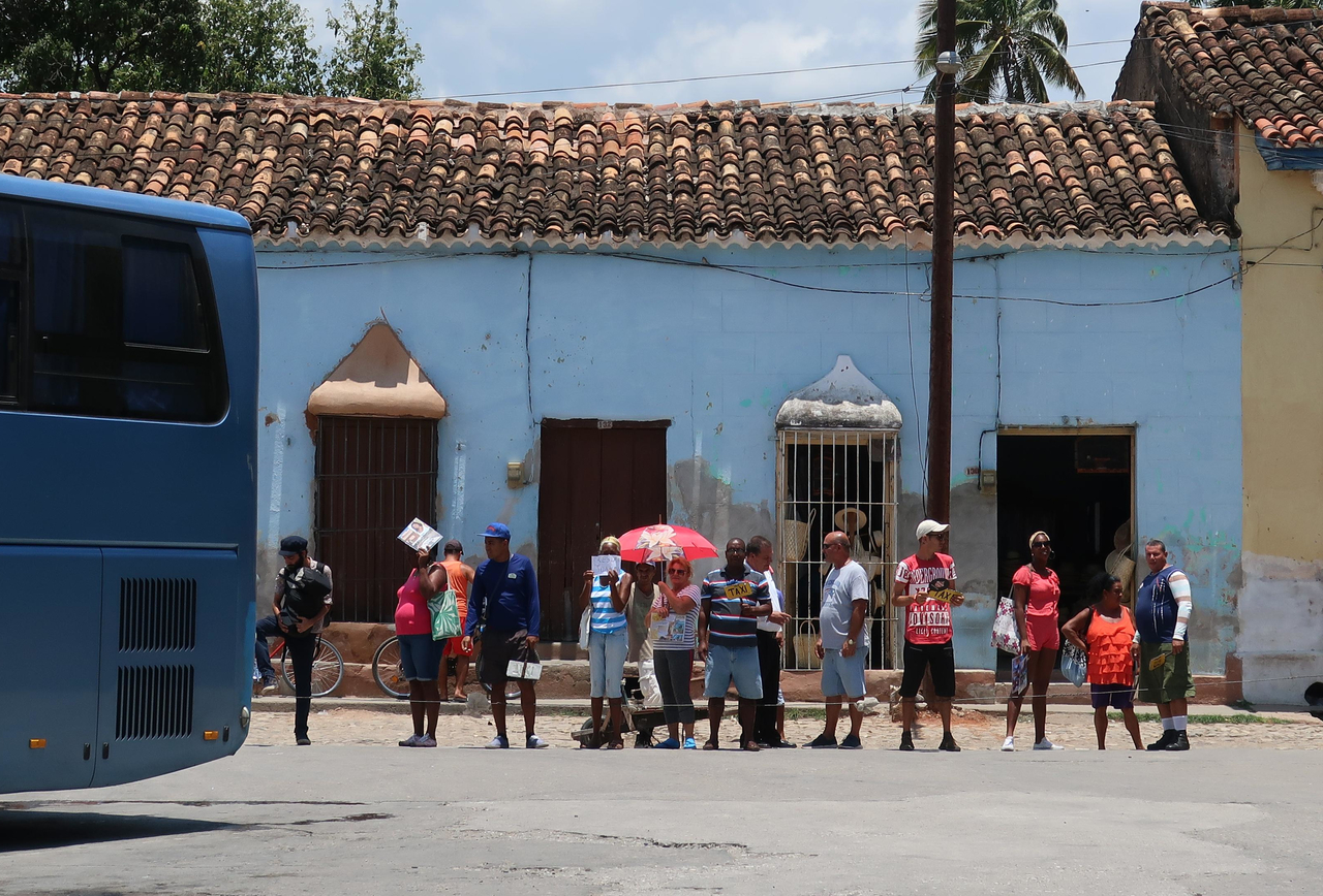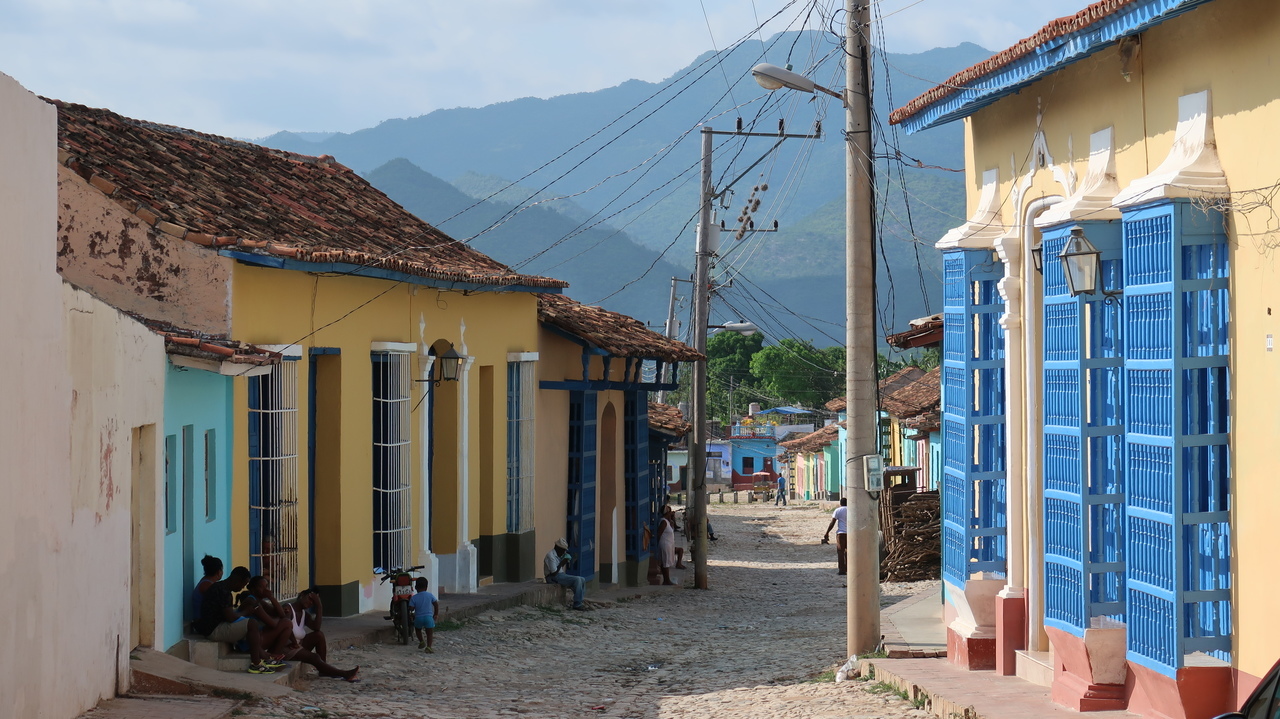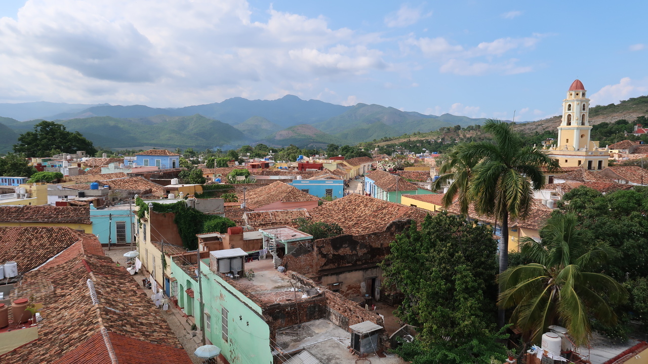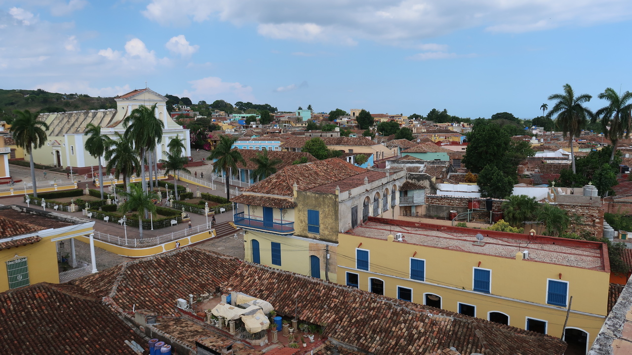 Über grob gepflasterte Straßen ruckelt unser Bus durch die koloniale Altstadt Trinidads. Am Busterminal warten hinter einer Absperrleine ganze Scharen von Taxifahrern, die eifrig ihre Fahrdienste anbieten. Daran werden wir uns in Trinidad noch gewöhnen müssen. Neben Taxifahrern wimmelt es auch von teuren Touri-Restaurants wie das “Monte y Mar”, wo uns auf einer netten Dachterrasse pappige Pizza serviert und dazu eine Zigarre geschenkt wird. Unserem Gastgeber zufolge gibt es in Trinidad keine Restaurants, die sich an Einheimische richten, sondern nur Versorgungslokale für die Taxifahrer.