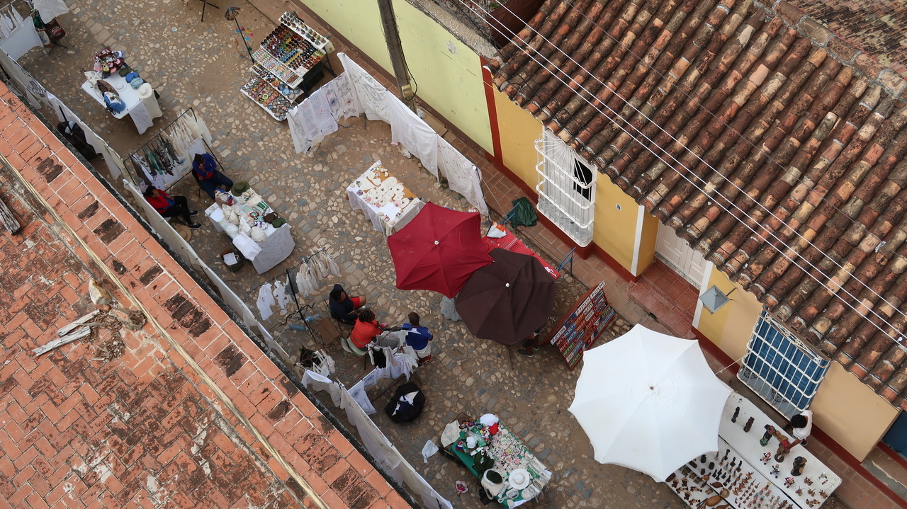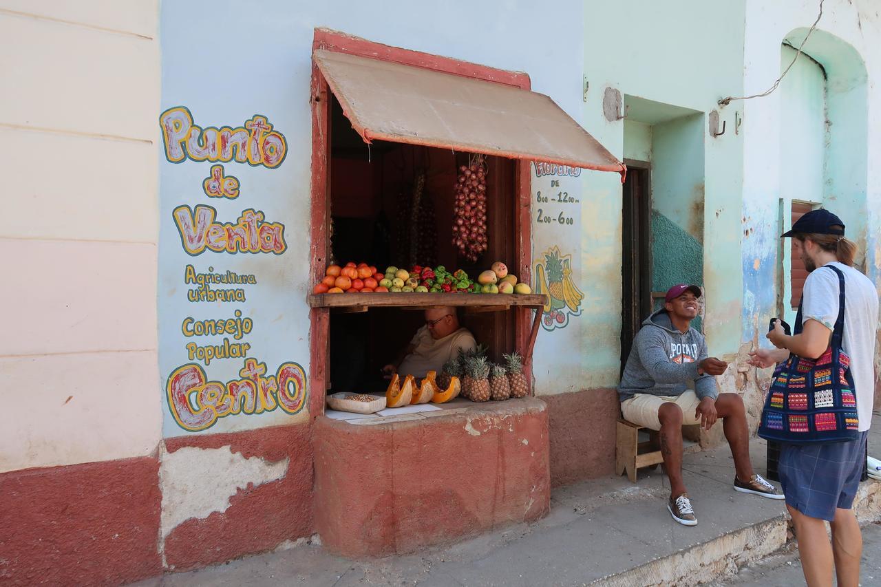 Auf der Rückfahrt kommen wir an einer Mangoplantage vorbei und erstehen dort für einen Euro drei riesige Mangos, die sich als die köstlichsten unserer Weltreise erweisen. „Mango Señora” heißt diese Sorte in Kuba, wie wir am nächsten Tag von Julio erfahren, und eine viel kleinere Sorte heißt „Mango Macho”. Am Samstagmorgen ist Markttag: überall in der Stadt werden frische Lebensmittel angeboten – auf Handkarren, Bicitaxis und sogar in den Fenstern der Wohnhäuser.