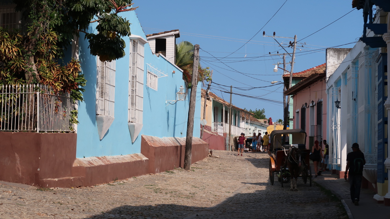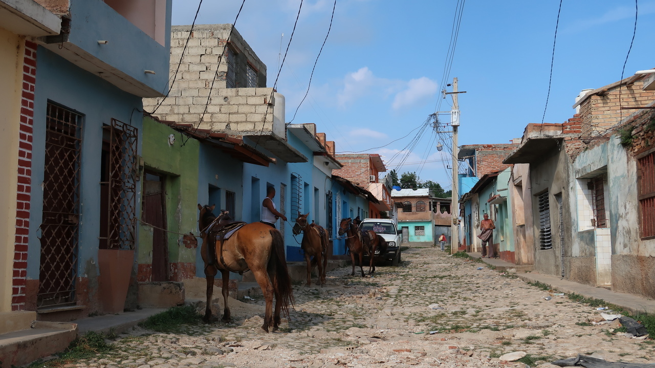 Von der Plaza Mayor aus spazieren wir in die einfacheren Gegenden der Stadt, wo die afrokubanische Bevölkerung mehr auf der Straße als in ihren Häusern zu leben scheint. Mit Pferden oder Hunden, Spielen oder Musik beschäftigt, sind die Menschen hier gut gelaunt und unaufdringlich. Und kein Taxi weit und breit.