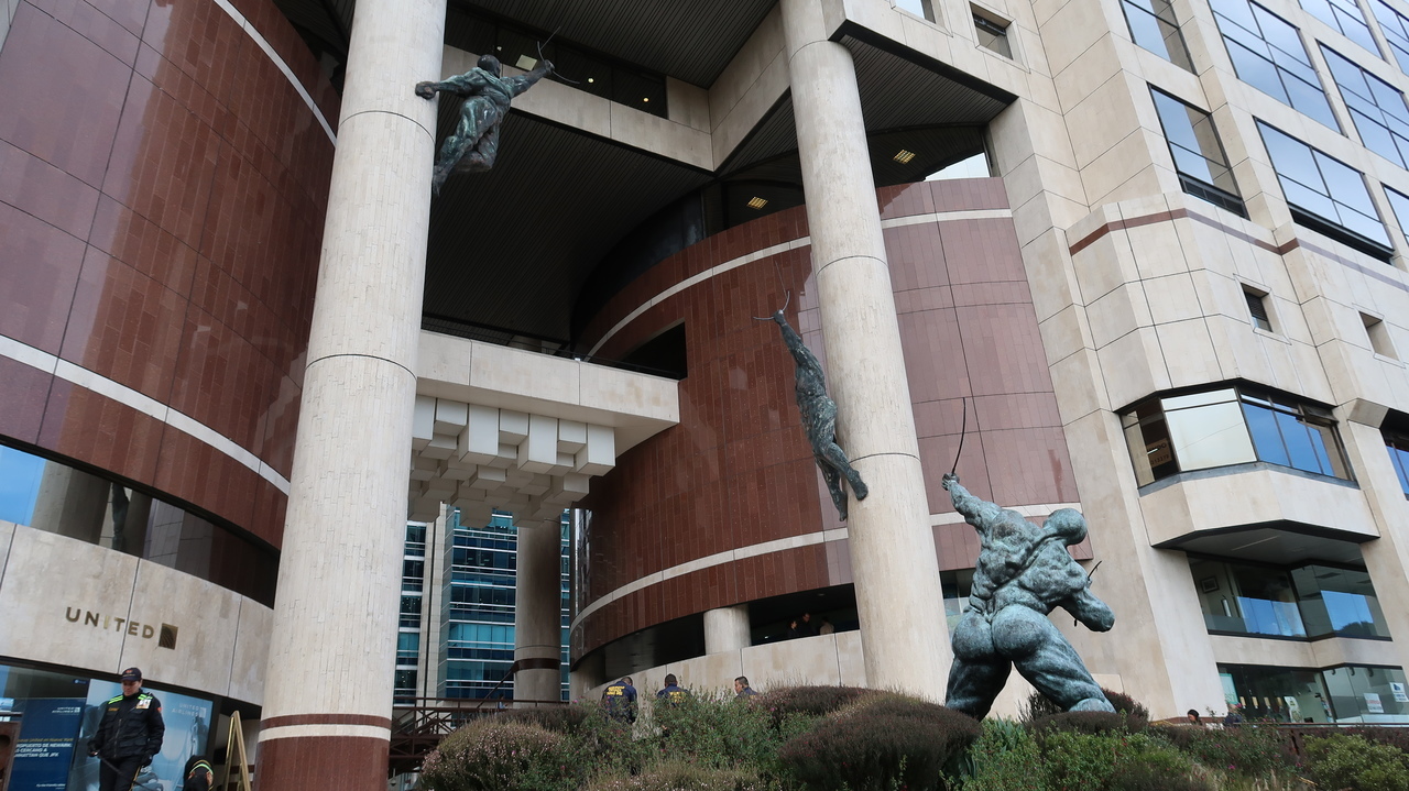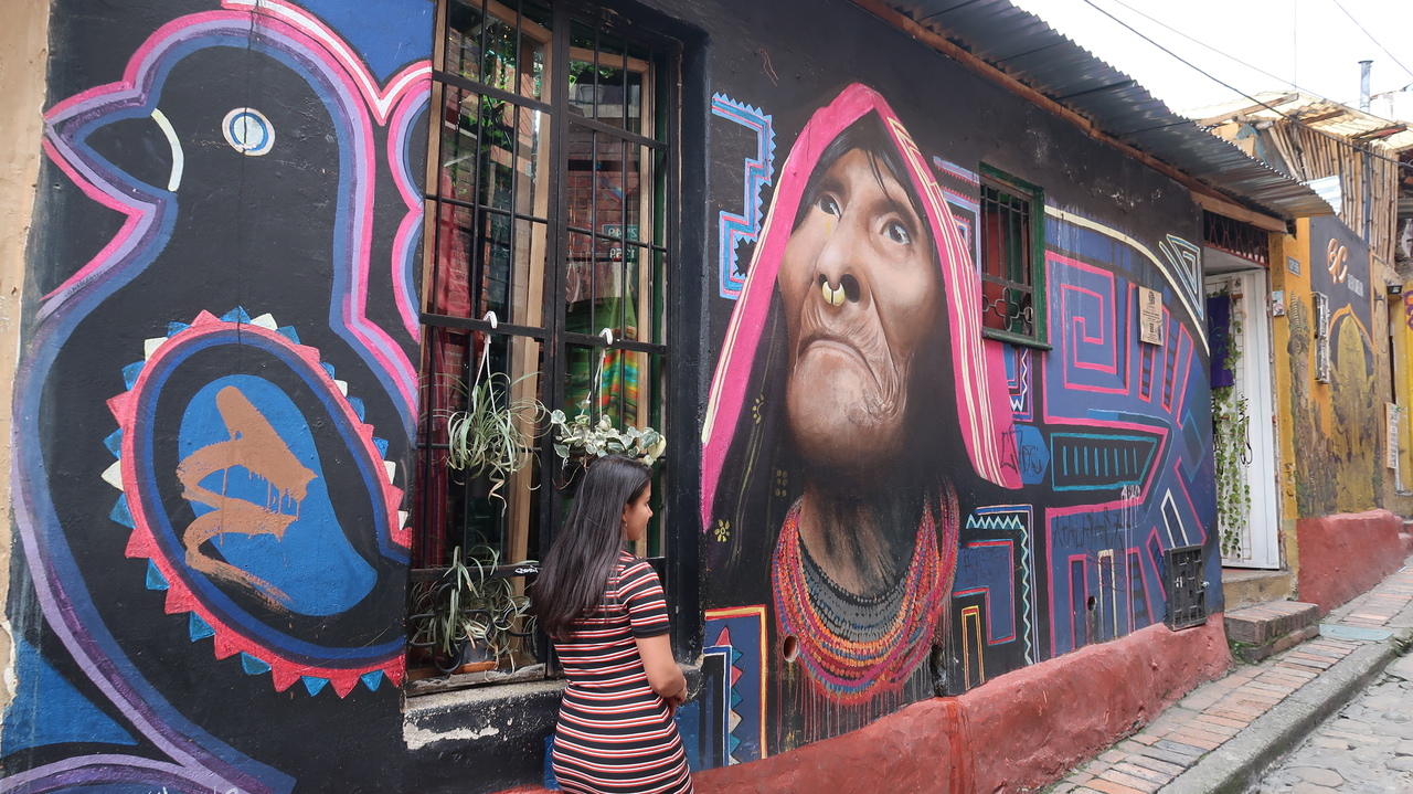Gepflasterte Gässchen, Häuser im Kolonialstil und jede Menge Graffiti umgeben uns in der Altstadt von La Candelaria. Im Museo Botero stellen die Bilder und Skulpturen dicke Menschen dar, das charakteristische Motiv von Fernando Botero. Im Innenhof des imposanten Gebäudes blüht ein Baum namens Siete Cueros („sieben Leder“), wie Carlos weiß. Er ist auch geschichtlich sehr bewandert und schildert uns den Weg Kolumbiens zur Unabhängigkeit unter der Federführung des Volkshelden Simón Bolivar, nach dem landesweit in jeder Stadt ein Platz benannt ist.