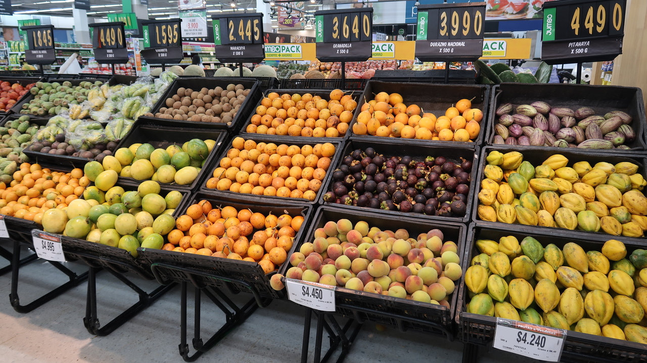 Im Jumbo Supermarkt, der seinem Namen alle Ehre macht, decken wir uns mit allerlei lustigen Früchten ein und probieren uns durch die kolumbianische Tropenfruchtwelt. Die Papyuela, die wie eine Mischung zwischen Mango und Sternfrucht aussieht, schmeckt ziemlich bitter und kann uns nicht so ganz überzeugen. Curubas sind grün-gelb, länglich, weich und das Innenleben erinnert an Maracuja, nur einen Hauch saurer. Von außen erinnert die Lulo an eine orangene Tomate, innen ist sie schleimig-kernig und schmeckt fruchtig-süß und sehr lecker. Von außen braun und unscheinbar, haben Mangostinos innen weißes Fruchtfleisch mit einer Lychee-ähnlichen Konsistenz in einer violetten Hülle, das etwas nach Kakao schmeckt. Sehr lecker. Eindeutiger Sieger der Obstverkostung ist die Pitahaya (Drachenfrucht), außen schuppig gelb, innen weißes, süßes Fruchtfleisch voller Vitamine. Köstlich!