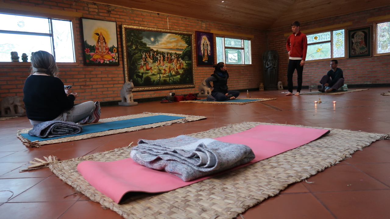 Es folgt eine weitere Nacht mit wenig Schlaf. Im Casa de Voluntarios ist der Autolärm zwar leiser, dafür mauzen Katzen laut ums Haus herum, es ist zugig - und eisig kalt. Um 5 Uhr morgens begeben wir uns zur stillen Meditation in den Tempel (die davor stattfindende Hare Krishna Meditaion mit Gesang und Tanz schenken wir uns). Still ist die Meditation allerdings nicht – der Straßenlärm, Geflüster, Umhergelaufe und Tür-Offen-Stehen-Lassen der Klosterbewohner sorgen für Ablenkung, Zugluft und Kälte. Es folgt die Vorlesung, in der ein Älterer der Gemeinde auf Spanisch das Konzept des hier praktizierten Bhakti Yoga erklärt, bei dem es um die Entwicklung der Liebe zu Gott geht. Im Grunde ist seine Message, dass der materialistische Alltag unserer modernen Gesellschaft vom Göttlichen in uns und damit vom wirklich Wichtigen ablenke.