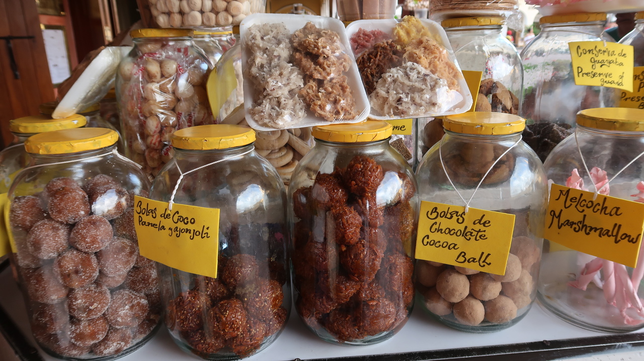 Im hippen Stadtteil Getsemaní liegt unsere Unterkunft in einem besonders kunstvoll gestalteten Gässchen: voller ozeanischer Straßenkunst ist die Calle de San Juan und das Hotel Leyendas del Mar rundum im Stil von Meereslegenden dekoriert. Die Museen der Stadt könnten kontrastreicher nicht sein. Der Palacio de la Inquisición porträtiert einerseits die Gräueltaten der Spanischen Inquisition, die Tribunale in Cartagena einsetzte, andererseits auch die Besiedlungsgeschichte Kolumbiens und die unterschiedlichen indigenen Völkergruppen. Im Choco Mueseo besteht die quirlige Leo darauf, dass wir das riesige Sortiment kosten: weiße Schokolade, solche mit 100% Kakao, Kakao-Nibs, Schoko-Tee, ein Mais-Schoko-Getränk namens Mazato, das uns an Pinolillo aus Costa Rica erinnert … Als wir den Schoko-Schock halbwegs verdaut haben, gönnen wir uns auf der Süßigkeiten-Gasse, dem “Poral de los Dulces” die lokale Spezialität Cocados - immens süße Kokosraspel-Bällchen mit Panela. Das reinste Schlemmerparadies für Zuckerliebhaber.