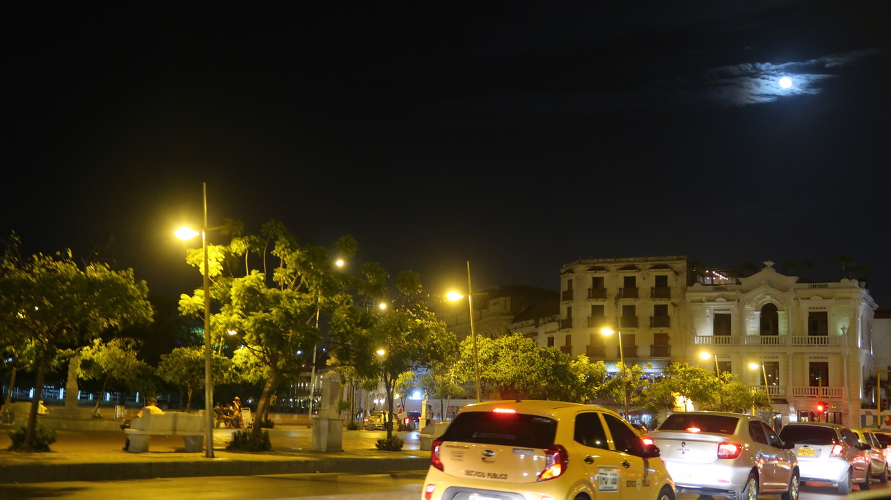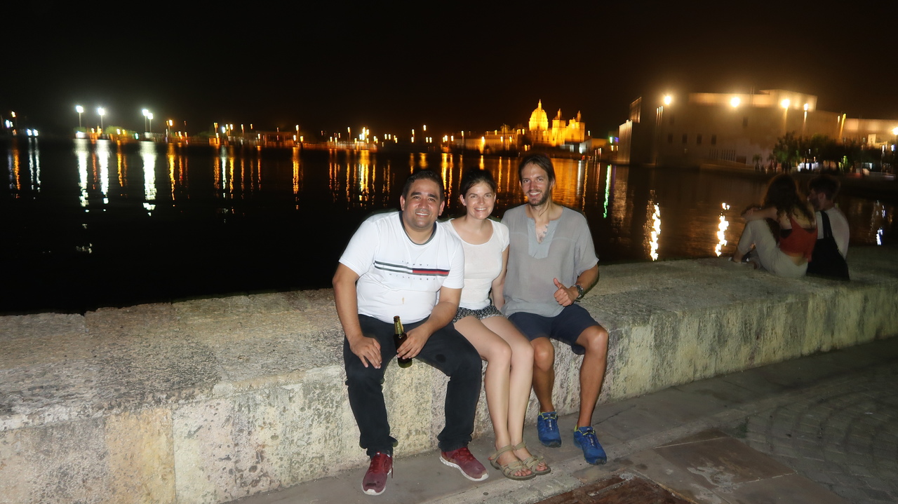 Wer es sich leisten kann, wohnt in Cartagena im Viertel Boca Grande, wo ganze Reihen moderner Hochhäuser die Küste säumen. Während wir die koloniale Altstadt viel charmanter finden, sind die Einheimischen hier offenbar mächtig stolz auf die hohen Betonbauten mit ihren Fensterfronten. In seinem Auto kutschiert uns Joe durch das abendlich beleuchtete Boca Grande, bevor wir uns Arepas an der Uferpromenade gönnen. Joe ist ein Freundesfreund, den Annas Freundin Lena vor einigen Jahren in Spanien kennen gelernt hat. Als Entrepreneur hat er bereits mehrere Unternehmungen gegründet und konzipiert gerade integrierte Mobilitätslösungen für den kolumbianischen Tourismussektor. So diskutieren wir einen inspirierenden Abend lang seine und unsere Geschäftsideen, während beleuchtete Bötchen im Hafenbecken herumtuckern.