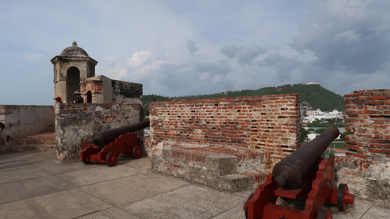 Das Castillo den San Felipe de Barajas bietet einen weiten Blick über Cartagenas Altstadt, die Hochhäuser von Boca del Mar und das Meer. Wir laufen durch steile Tunnels mit erfrischendem Luftzug, hören Trompeter und sehen Türmchen und Kanonen. Ansonsten gibt es hier viel freie Fläche und Sonne pur. Romantischer ist da der Sonnenuntergang an der Stadtmauer im Café del Mar mit Blick aufs Meer und einer Coco-Limonade. Alle schauen gebannt auf die Leinwand, als Kolumbien gegen Gastland Quatar beim Copa Americana spielt. Dann Jubelschreie. “¡Gol!”