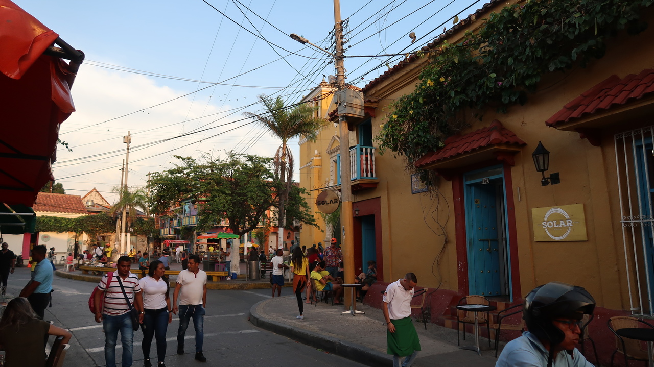 Am nächsten Morgen fahren wir mit Carolina und Carlos nochmal durchs moderne Boca Grande. Eigentlich waren wir verabredet, um den Markt zu erkunden, aber da die weitere Teilnehmerin erst später kann, überbrücken wir die Zeit mit einem Frühstück bei Brioche. Hier ist die Küche nicht so fein wie bei Oh Lá Lá – Carlos bekommt zu seinen Pan Cakes Steaksoße serviert. Er ist ein Freund von Carolina und möchte sich einen Eindruck von dem Markt verschaffen. Carlos stammt aus Bogotá und lebt bereits seit über zwölf Jahren in Cartagena, wobei er immer noch Schwierigkeiten habe, den karibischen Akzent zu verstehen. Carolina scheint die hier einkehrende High Society bestens zu kennen und stellt uns (Landschafts-)Architekten und die Besitzer diverser Restaurants und Inseln vor. Dann ist es Zeit, die Taiwanesin Tina abzuholen. Die Frührentnerin strotzt vor Energie und verbringt einen großen Teil ihrer Zeit mit Reisen um die Welt. So war sie als eine von bislang nur 10.000 Touristen mit einem Eisbrecher am Nordpol. Und zeigt uns Fotos, wie sie dort im minus ein Grad kalten Wasser geschwommen ist. Wahnsinn!