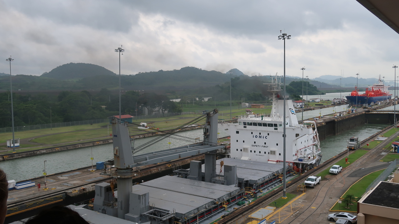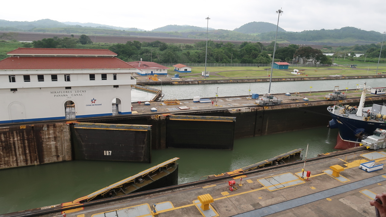 Wie in Zeitlupe schiebt sich der Ozeanriese vor unseren Augen durch die Miraflores-Schleusen, auf deren Maße Frachtschiffe weltweit dimensioniert werden. Vergleichsweise winzige Schlepperzüge halten das Containerschiff auf seiner exakten Bahn. Ein Kinderspiel war der Bau des Panama-Kanals nicht. Malaria, Gelbfieber und Tropenhitze erschwerten das Unterfangen, auf mehreren Staustufen etliche Höhenmeter zu überbrücken, um Pazifik und Atlantik auf einer Strecke von 80 Kilometern miteinander zu verbinden.