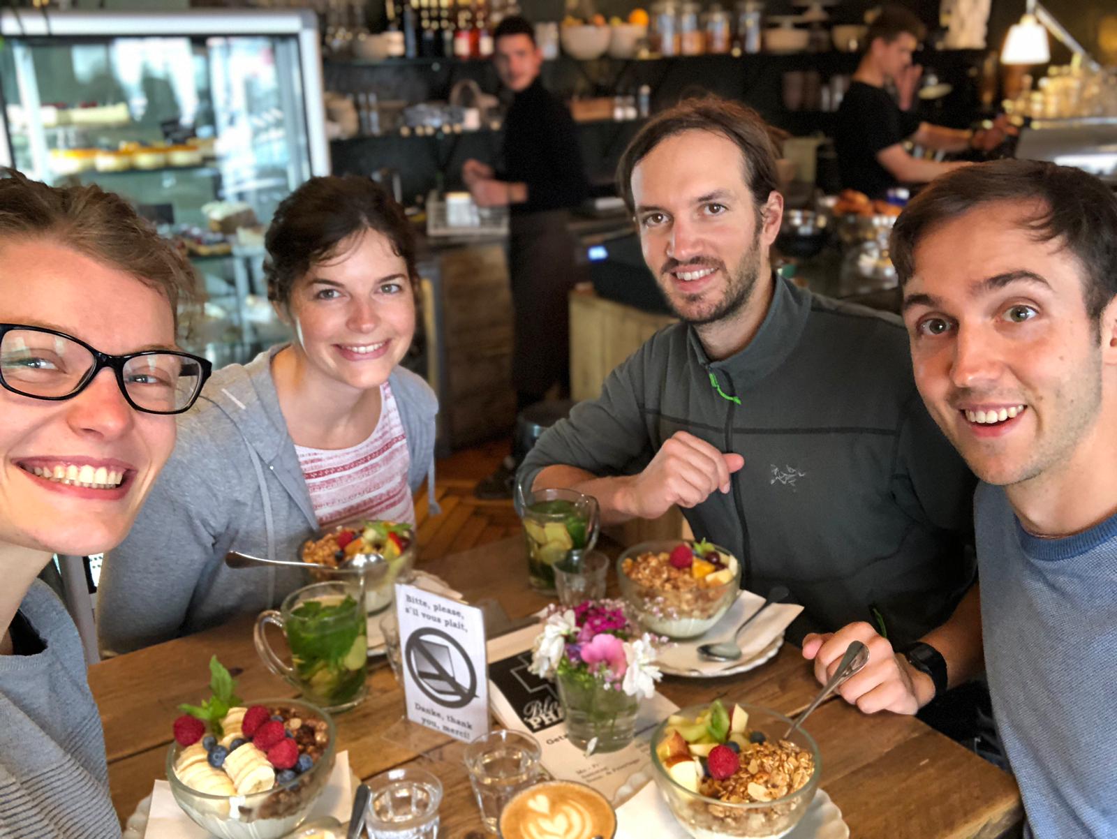 In Zürich sind Eva und Timo die ersten, die uns wieder auf europäischem Boden willkommen heißen. Sie sind im letzten Jahr in die Schweiz ausgewandert und wohnen inzwischen mit ihren drei Katzen nur wenige Minuten fußläufig vom Zürichsee entfernt. In der Schweiz hätte unser Reisebudget wohl kaum ein Jahr gereicht: das Abendessen im vegetarischen Buffetrestaurant Ruckzuck ist eine der teuersten Mahlzeiten unserer Reise. Dafür trumpft Zürich mit einer feinen Kulisse für unseren abendlichen Spaziergang durch den Lindenhof und die mittelalterlichen Straßen des Niederdorfs auf.